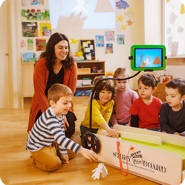 „Mit dem Story-Board verbinden wir kreative Bastelarbeit und die Erfindung eigener Geschichten mit dem spielerischen Umgang digitaler Medien. So fördern wir Sprach- und Sozialkompetenz – und machen Kinder zu aktiven, selbstbewussten Mediengestaltern.“